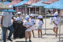 Mavi bayraklı plajda dalgıç dayanaklı paklık