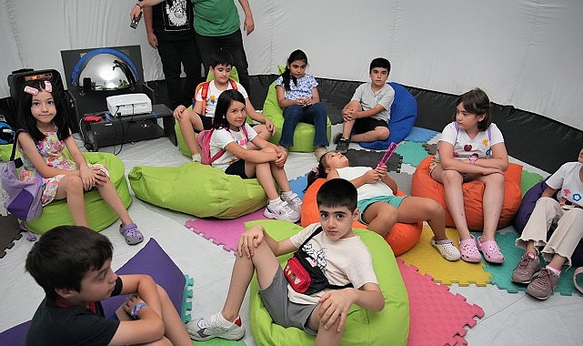 Keçiören Belediyesi Çocuk Eğitim Merkezi (ÇEM) yaz okullarında eğitim gören öğrenciler, Yunus Emre Kültür Merkezi’ne kurulan uzay çadırıyla kainatın derinliklerine seyahat yaptı.