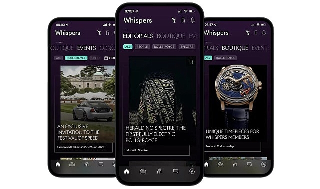 Rolls-Royce kullanıcılarına özel geliştirilen Whispers uygulaması ile markanın lüks ve özel deneyimi dijital dünyaya taşınıyor. Sadece Rolls-Royce sahiplerinin kullanabileceği, erişilmesi güç olan bilgilere ulaşabileceği, nadir keşifler yapabileceği ve benzer yaşam tarzına sahip kişilerle bağlantı kurabileceği özel bir dünya sunuyor.
