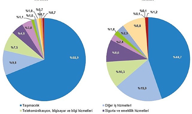 Hizmet ihracatı içerisinde en büyük hissesi %68,9 ile nakliyecilik hizmetleri aldı